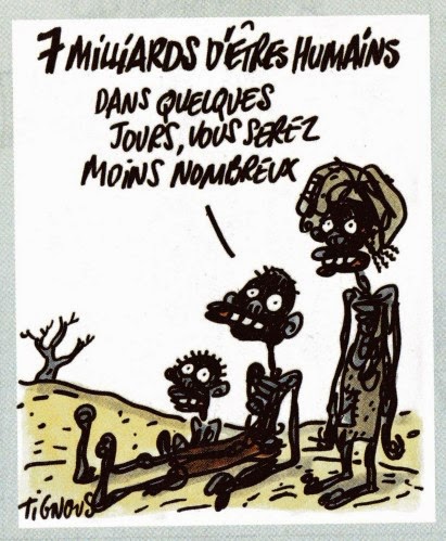EM MEMÓRIA de WOLLINSKI, CABU, CHARB, TIGNOUS E HONORÉ, os 5 cartoonistas do Charlie-Hebdo ontem assassinados: